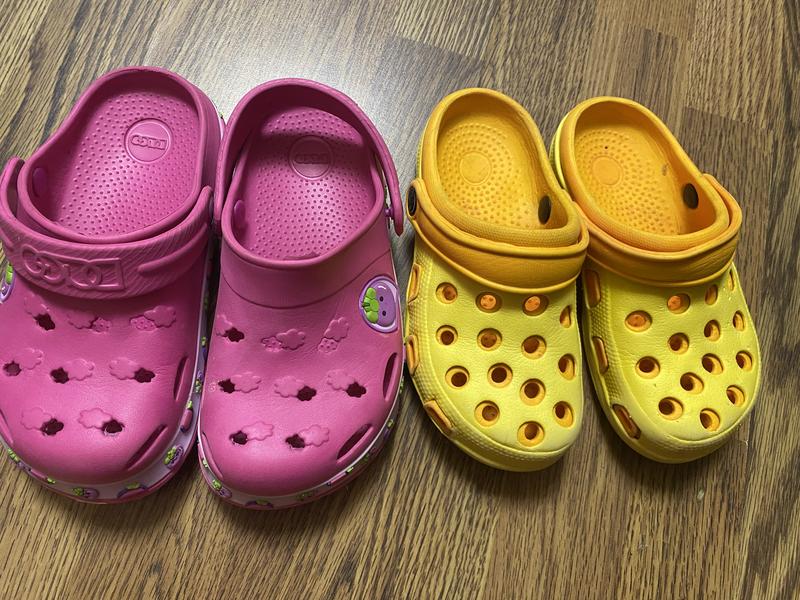 Крокси для дівчинки 31р рожеві устілка 20 см жовті 19.5 см