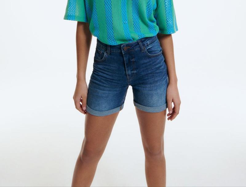 Джинсовые шорты р.13-14 (155см) Длина 30см, пояс 34см, есть утяжка В бедрах 41см Ширина колоши 24см Тканина тягнеться состояние идеально