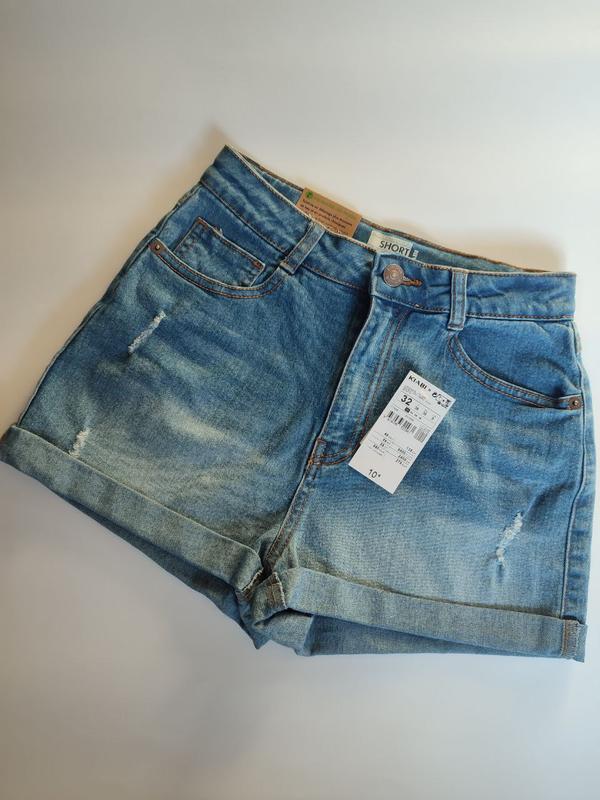 Новые джинсовые шортики, французского бренда Kiabi, размер 32,Пояс 29 см, длина 30 см