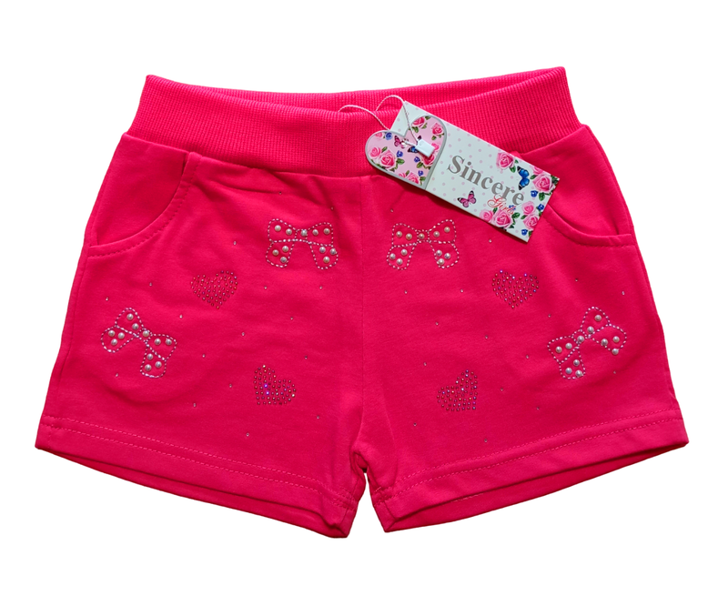 Шорти для дівчинки. Матеріал: 95% - бавовна, 5% - еластан. Виробник - "Sincere", Угорщина. Чудова якість! --- зріст 116: довжина - 25 см., крок - 5 см., напівобхват талії - 27 см., напівобхват стегон - 36 см.