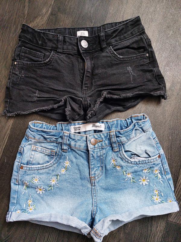 Чорні шорти River Island,розмір 140.Стан ідеальний.Ціна 120. Шорти з вишивкою Denim Co,розмір 140.Стан ідеальний.Ціна 120.За дві пари 200 грн.