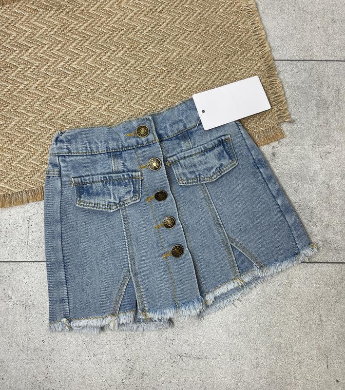 Стильні джинсові шорти/спідничка з завищеною посадкою В поясі ззаду є резинка Даже стильно виглядають🥰🥰🥰 Якість супер ❤Рекомендую ! 90/7 - довж 24 см,пояс 22 см(4 шт) 100/9 - довж 25 см,пояс 23 см(4 шт) 110/11 - довж 26 см,пояс 24 см(4 шт) 120/13 - довж 27 см,пояс 24 см(4 шт) 130/15 - довж 28 см,пояс 25 см(5 шт) 140/17 - довж 29 см,пояс 25 см(5 шт)