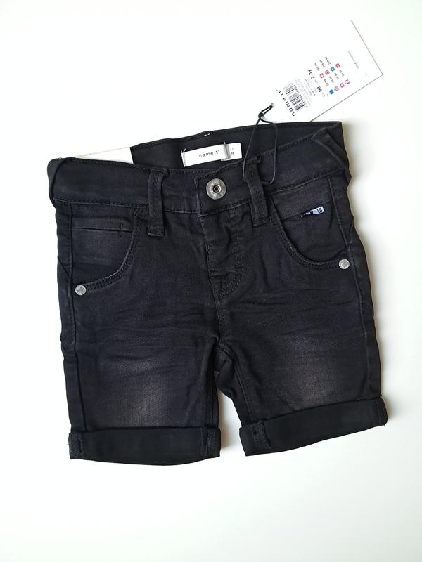 Шорти джинсові чорного кольору, на поясі утяжки, застібка замочок, є кишені. Склад: 41 віскоза, 31 коттон, 25 поліестер, 3 еластан. Зроблено в Китаї. Заміри: довжина 28, до паху 18, пояс 24 см
