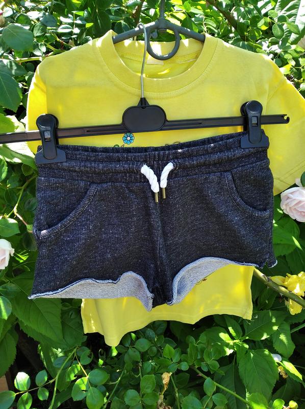 шорти коротенькі,двонитка.Спереду дві кишені та куліска. Заміри: довжина по боковому шву-22 п/об'єм -30