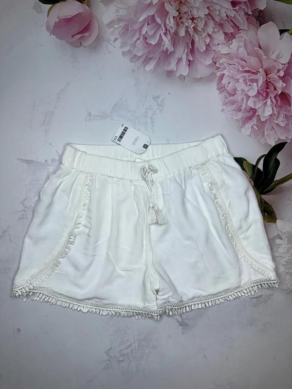 Літні шортики з натуральних матеріалів Колір білий Нові з биркою 🏷️Next 12 лет/152 Довжина 32. ПОГ 34+