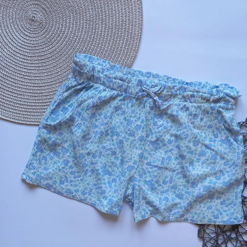 красивые и нежные шорты в цветочный принт. ткань в виде жатки длина 25, пояс 29 резинка