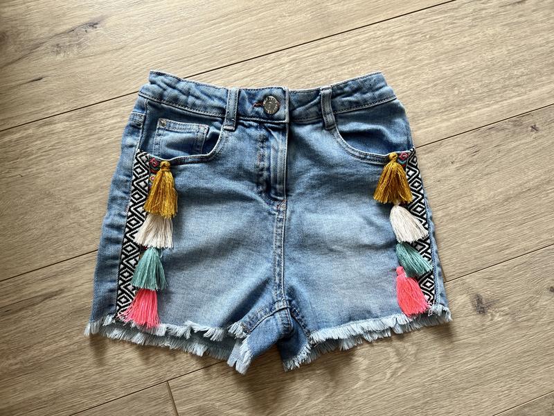 Крутезні джинсові шорти Matalan на 9років. Мʼякий денім, приємний до тіла. В прямі утяжка. У відмінному стані. Довжина 27см Пояс +- 28 см Стегна 36 Висота посадки спереду 23см