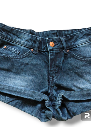 Класні шорти для дівчини підлітка від шведського бренду Н&М. Склад: 100% коттон. Розмір UK 6. Довжина 22, Пояс 36. Колір темно синій. Стан гарний. Є багато якісного одягу і взуття для всієї родини! приємних покупок!!!)
