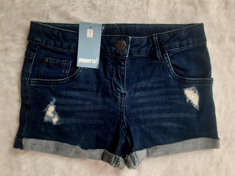 Джинсові шортики на дівчинку на р.140 (8-10років)фірми Pepperts. Нові, 100%бірка.Якість просто відмінна. Заміри:-довжина-25см,пот-33см,поб-38см.
