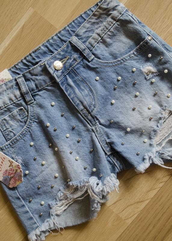 Модні джинсові шорти в бусинки із завищеною посадкою