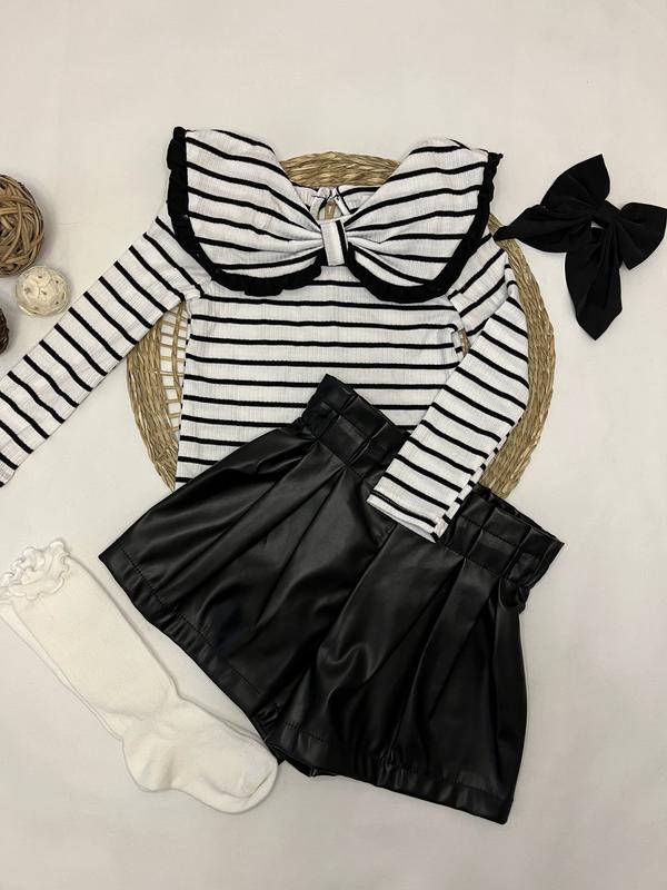 Ціна в оголошенні тільки за шорти! Стильні шорти з якісної щільної тканини під екошкіру - 440 грн В наявності в розмірах: 4р (98-104см) - Довжина 26см Пояс 25см 5р (104-110см) - Довжина 27см Пояс 26см 6р (110-116см) - Довжина 28см Пояс 27см Блуза в рубчик зі стильним комірцем - 370 грн 4р(98-104см) - Довжина 37см Рукав 34см 5р(104-110см) - Довжина 40см Рукав 37см 6р(110-116см) - Довжина 42см Рукав 40см Підколінки 120грн