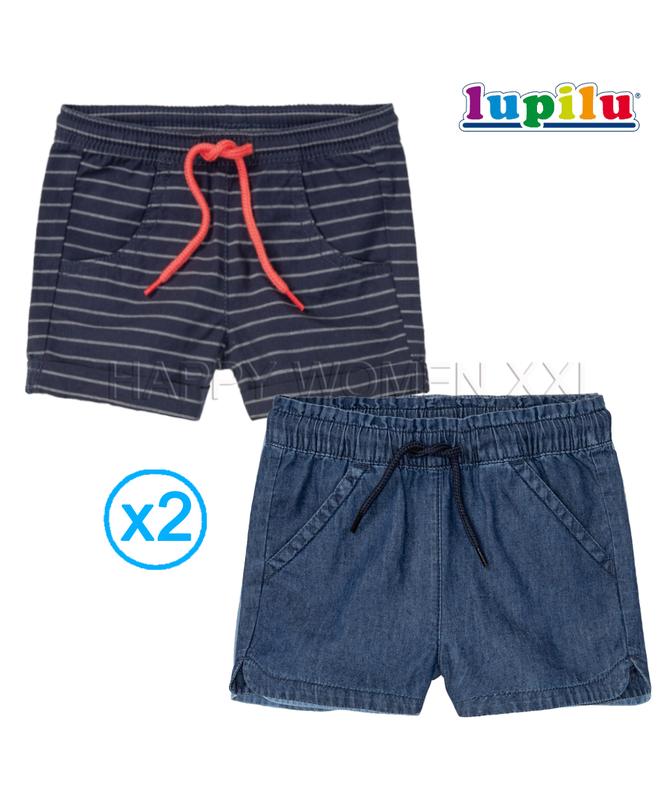 Вказана ціна за набір, окремо продаються. Розмір на етикетці: 2-4 роки (98-104 см) та 4-6 років (110-116 см). Комфортні літні шорти із тканини від бренду Lupilu® виготовлені з якісного бавовняного попліну. Тканина не дає усадки, не покривається катишками, стійка до вигоряння. Склад: 100% бавовна. - - - - - - - - - - - - - - - - - - - Бренд Lupilu® повномірний, за оцінками покупців, не маломірить. Зріст та вік, що зазначені на етикетці, збігаються з реальними розмірами дитини.