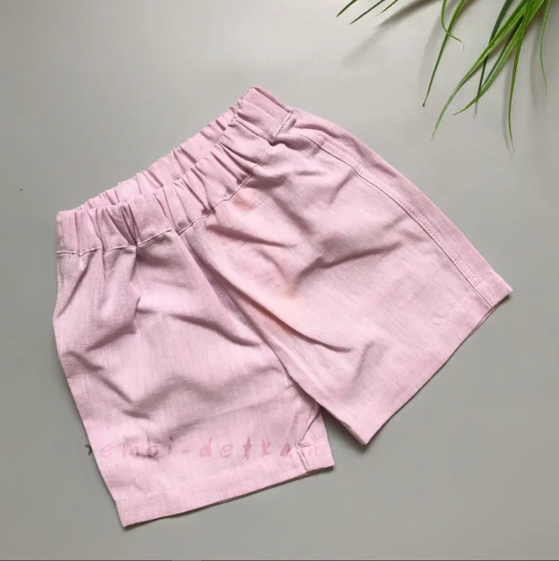 Шорти дитячі льон для дівчинки з лімітованої колекції ТМ Бембі. По талії вставлена широка гумка. Матеріал - льон. Розміри 92 і 98.