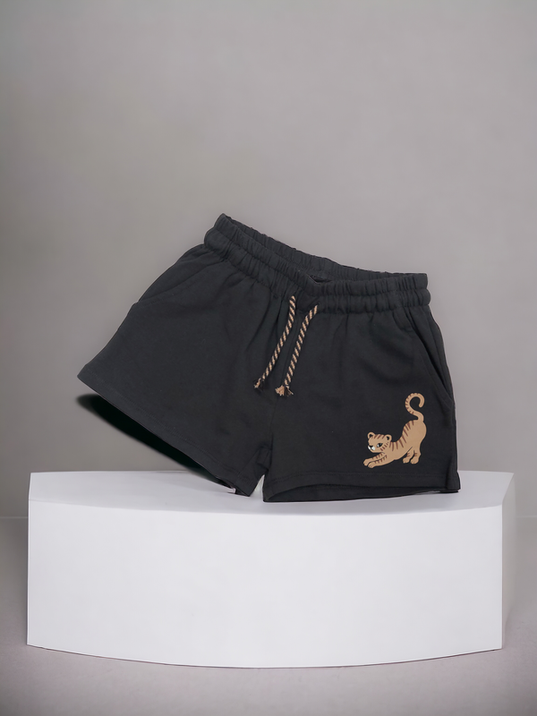 🩳 Шорты на девочку 🩳 Цвет графит, с карманами, объем регулируется шнурками, аппликация тигра . 100% хлопок . Размер: 104см✅️ 110см✅️ 122см✅️
