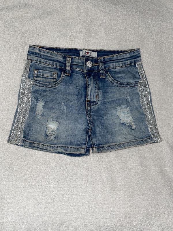 Джинсові шорти дівчинці 8-9 років, довжина 24, пояс 27-28, є утяжки, бедра 34-35, джинс еластичний