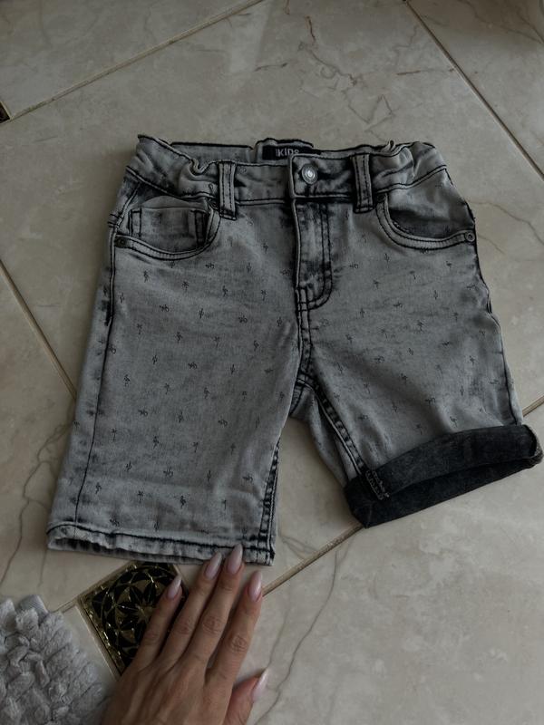 Джинсові шорти, тягнуться, розмір 110 см, Заміри довжина повністю 33,можна підкотили як на фото, талія 26(у тяжка)