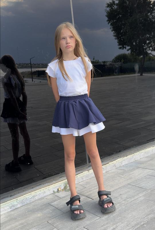 Шорти спідниця відмінної якості! Матеріал- мадонна (спеціалізована тканина для пошиття шкільного одягу – стійка, відмінно тримає форму). В поясі – широка резинка. Заміри: 128 – довжина 29/ півобхват пояса 24 134 – 31/ 24,5 140 – 31/ 25,5 146 – 33/ 26 152 – 33/ 27 Ціна: 530 грн