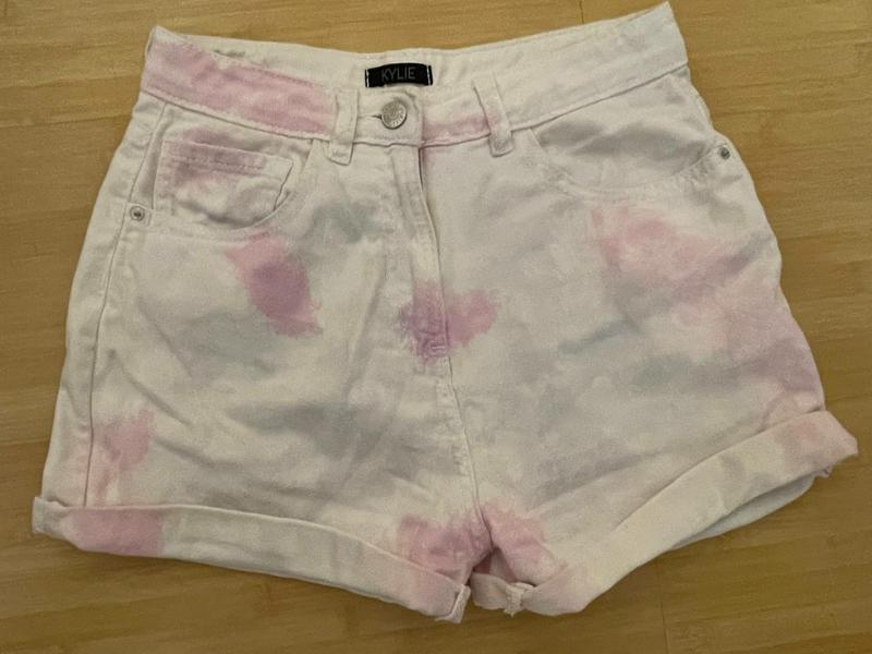 шортики джинсові тай дай на 14 років стан нових пот 34, поб 46, висота 29, бік 29, штанина 26