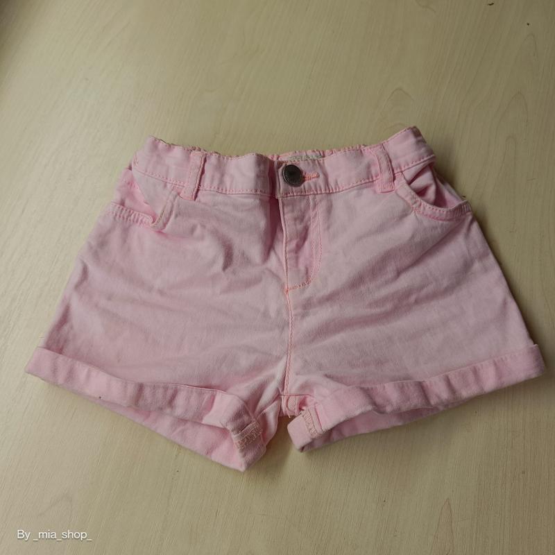Яскраво рожеві шорти із джинсу, є затяжки для корекції по талії. Вік 7-8 років