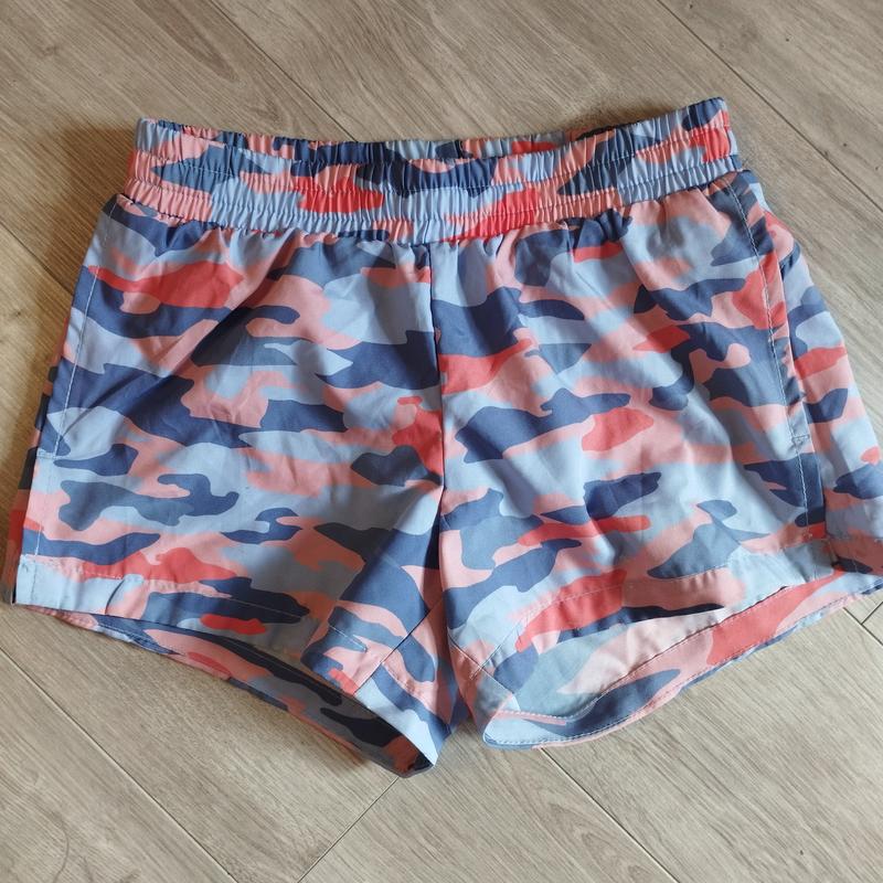 Отличные шортики для тренировок, спорта или для улицы. Легкі, не жаркі. В идеальном состоянии. Присутствовали несколько раз в спортивном зале. На поясе резинка плюс шнурок. По бокам небольшие разрезы и два кармана. Куплены на официальном сайте в США. длина 25см, ПОТ 27см, ПОБ 43см, шаг 7,5см.