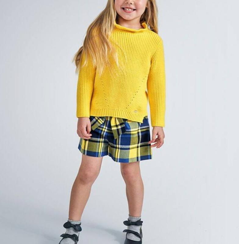 Яскраві шорти Mayoral з костюмної тканини в жовто-синю карту. У шортів суцільнокроєний пояс, ззаду на гумці, з можливістю регулювання. Спереду декоративний пояс-бант. Колір amarillo (жовтий). Микола скоробелі довжина 32 см у зоні стегон 41 см.