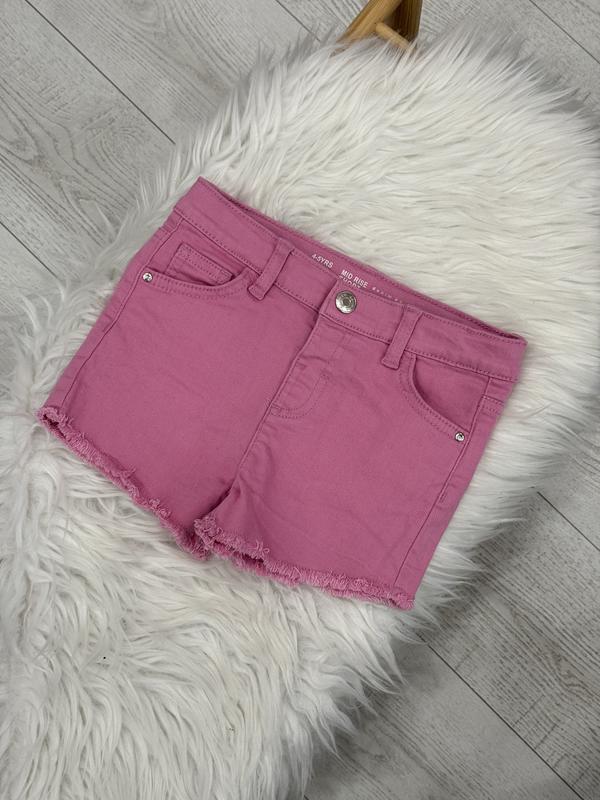 Стильні коротенькі Шортики зі стрейчевого джинс котону, пояс регулюється. Нові без паперової бірки але зрізана бахрома позаду трішки, ціна вказана мінімальна Розмір 110, але можна раніше і на 98/104+- дивіться на заміри довжина спереді 22, по спинці 24, пояс 27,5 стягується, посадка спереді 18,5, напів обхват по стегнам 30/31 тканина тягнеться