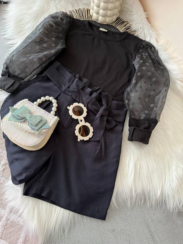 Кофта длина 49,5 грудь 33,5, рукав от шеи 47 см. шорты длина 38 пояс 30 см