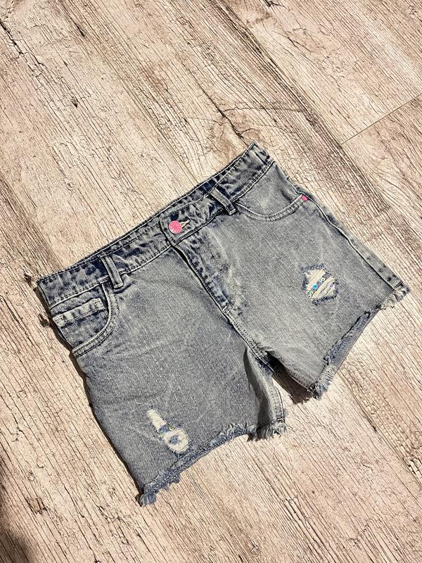 Стильні короткі джинсові шорти для дівчинки (з потертостями та паєтками)