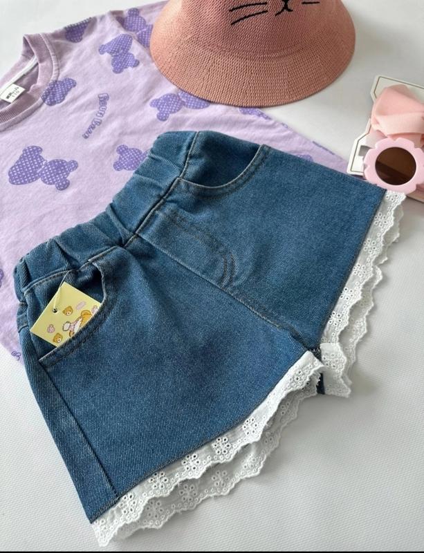 Джинсові шортики 🖤 Джинс💯 🖤 Пояс на резинці 🖤 Є кишеньки кід Розмір 90(2 шт) 100(2 шт) 120(2 шт) 130(2 шт) 140(2 шт) 90-Довжина 21 см пояс 20*2 см 100-Довжина 23 см пояс 20*2 см 120-Довжина 25 см пояс 22*2 см 130-Довжина 27 см пояс 22*2 см 140-Довжина 28 см пояс 22*2 см Виміри зроблені однієї ростовки Допустима похибка +-1-2 см