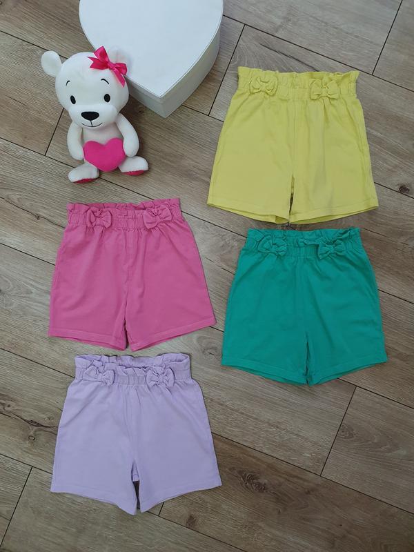 Пропоную набір зручних шортиків для дівчинки В комплекті 4 кольори: жовтий, рожевий, м’ятний та лавандовий. М’який котон, приємний до тіла. Пояс на резинці, доповнений милими бантиками 🎀 📌 Розмір 4 - 5 років (повномірні !) 📌 Стан відмінний (не ношені👌) 📌 Ціна за набір 4 шт. 350 грн🏷 Підійдуть для садочку, прогулянок ...