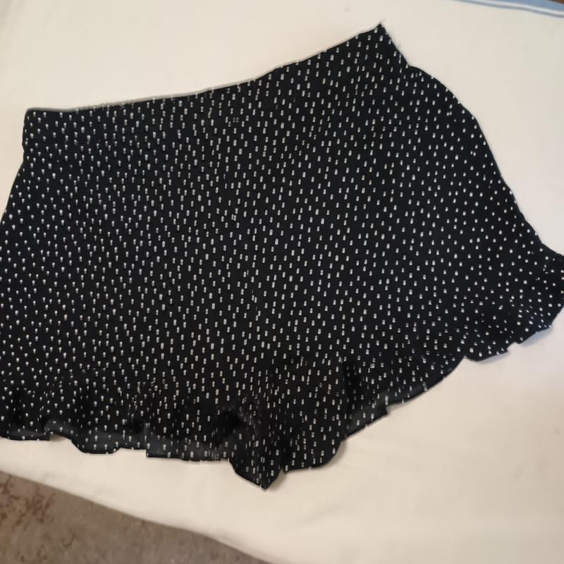 шорти чорного кольору в маленький горох, віскоза, з рюшами, в поясі гумка