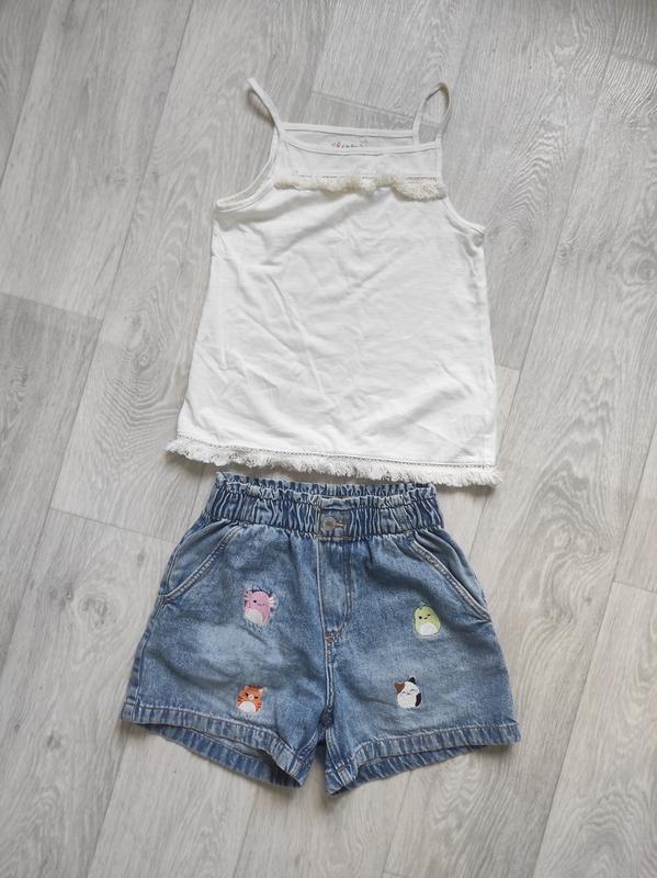 Джинсовые шорты с вышивкой + майка, цена за все вместе! Вещи в хорошем состоянии, все как на фото. Сплата только на карту! А также смотрите Мои и другие объявления!