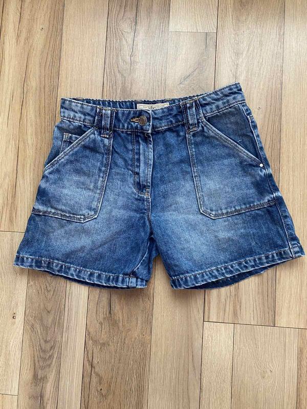 Шорти джинсові для дівчинки 10 років. Є утяжка. Фірма Next. Довжина 31 см, ПОТ 31 см. ПОБ-37 см