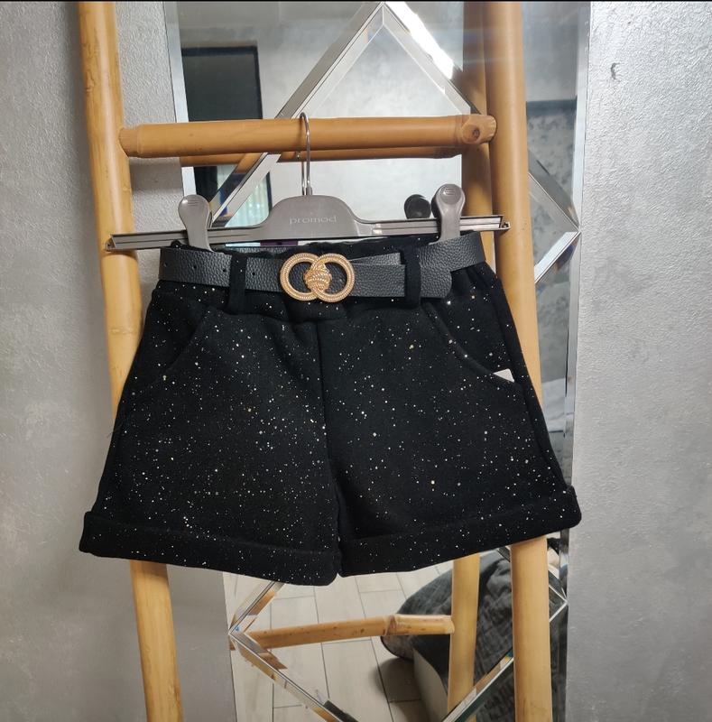 через кнопку купити тільки повна оплата!!! Темлесенькі шортики Для модниць Тканина шерсть з напиленням шимеру Пояс в комплекті Виробництво Італія Якість супер 🔥🔥🔥 Заміри-довжина/ стегна/ пояс 4-27/38/26 6-27/41/27 12-31/47/30