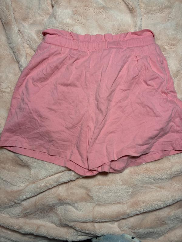 Ці стильні та зручні шорти ідеально підійдуть для дівчинки або дівчини-підлітка на розмір 146-156 см. Характеристики: Колір: Приємний, яскравий рожевий (або пудровий/кораловий, залежно від точного відтінку). Матеріал: Імовірно, легкий котон або трикотаж, який забезпечує комфорт та свободу рухів у спекотну погоду. Дизайн: Модель має високу посадку та еластичний пояс на резинці, можливо, з декоративними рюшами або оборками по верхньому краю. Деталі: Присутні зручні бічні кишені. Сезон: Відмінний варіант для літнього сезону або як комфортний одяг для дому. Ці шорти поєднують у собі модний дизайн та практичність, що робить їх чудовим вибором для повсякденного носіння.
