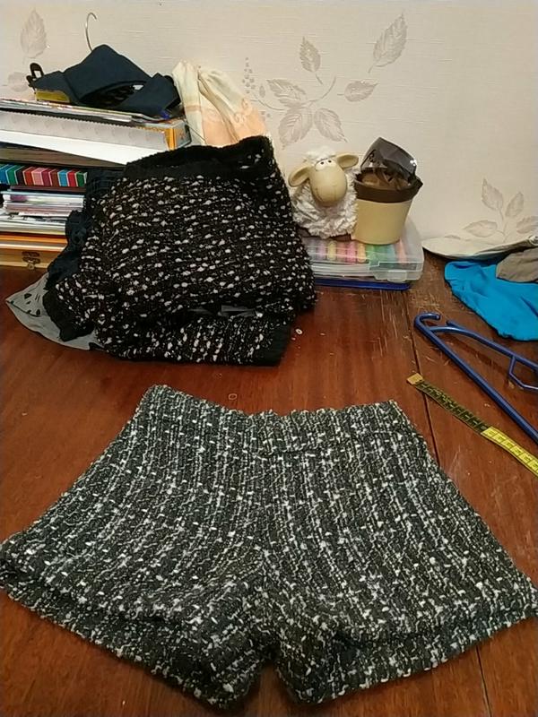 в талii резинка утягуюча, злiва на боку блискавка, по талii 27см, довж.шорт 20см, по низу загораться на манжет.