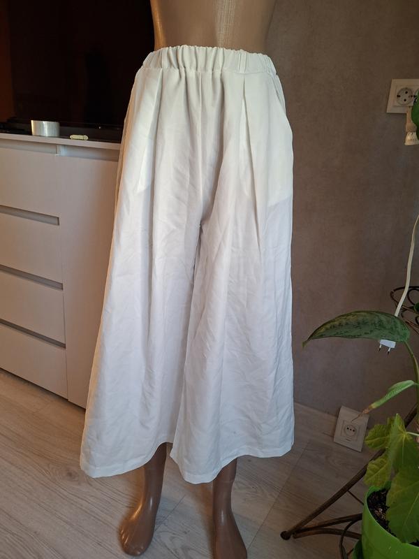 указан р 150, подойдут на ХС состояние идеальное, чистое, без дефектов есть карманы по бокам складки, и резиночка в талии замеры: oт 29 до 36 ос свободно 50 длина 83 посадка спереди/сзади - 32/34 шаговый 54 ширина штанини внизу 54 тканина не тягнеться, не просвечивается, средняя плотность безпечна оплата подписка 100 грн Укрпочта через кнопку купить после платья -без подписки отправка каждый день / на следующий день все виды пошт