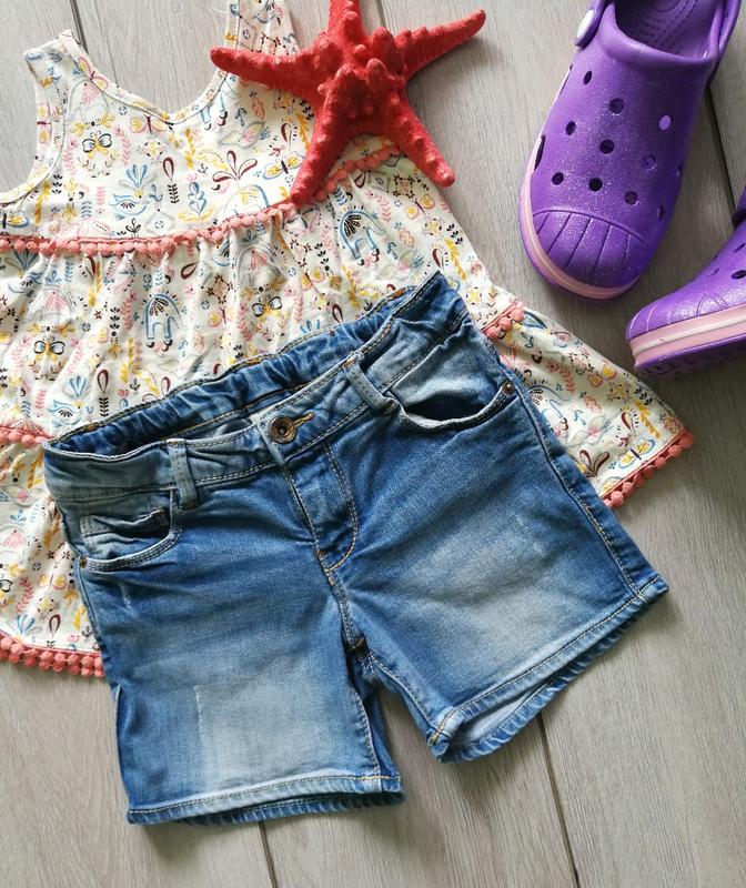 Шортики Zara на 6-7 років, довжина 29 см, максимальна ширина талії 31 см, є стяжка, стегна 34,5 см, тягнуться