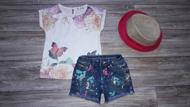 Стильні шортики , бирка зрізана, приблизно на 6-8лет, орієнтуйтеся по замірах: Довжина 22.5 ПОП 24.5 - 28 Посадка 16.5/26.5 Ширина штанини 19+