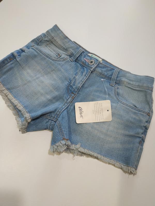 Alive. короткі джинсові шорти, на ріст 140см піт 33см побіди 43см довжина 23см тканина тягнеться)