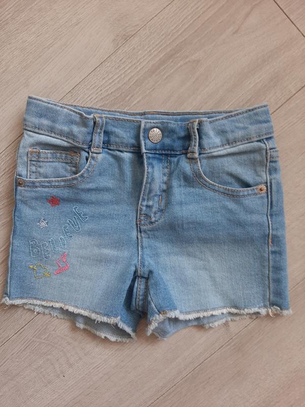 Продаю наші шортики, на бирці на 4т, носили до 5років.Джинс трохи тягнеться, є стяжка, блискавка кнопка.Стан нових.