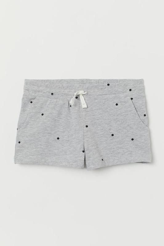 трикотажные вещи H&M Короткие шорты из мягкого хлопкового трикотажа. Талия на резинке и кулиске. Боковые карманы. СоставХлопок 94%, Эластан 5%, Вискоза 1% Замеры в свободном состоянии: пот 36, поб 44, длина 26