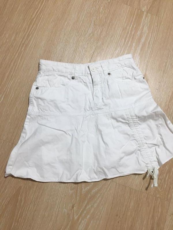Спідниця сорочка, шорти-трикотаж. Зшито разом на одному поясі. Пояс можна регулювати на меншу талію, з обох сторін можна підтягнути гумку і застебнути ґудзик. Довжина-39див, ПОТ-33см.