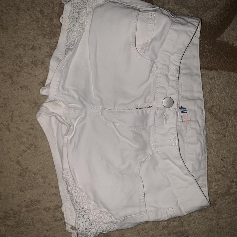 Шорти джинсові в білому кольорі для дівчинки 9-10 років. Шорти оздоблені кружевом по боках. Дцже зручні та круто виглядають