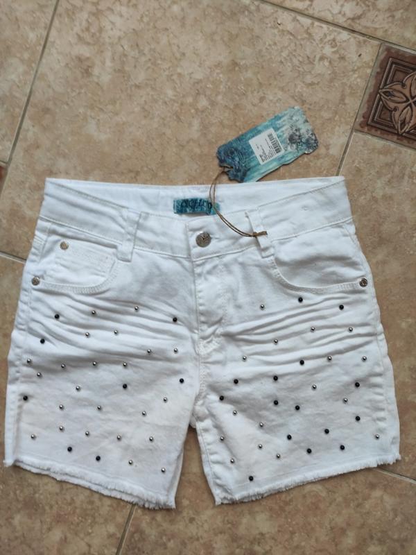 Классные джинсовые шорты с бусинами. Есть утяжка на поясе.