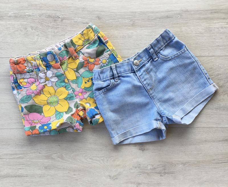 3-4 роки. Набір джинсових шортів у відмінному стані на дівчинку! Ліві Next: довжина-21, п/о талії-23{утяжка}; праві Children place: довжина-21, п/о талії-22{утяжка}. Ціна за набір