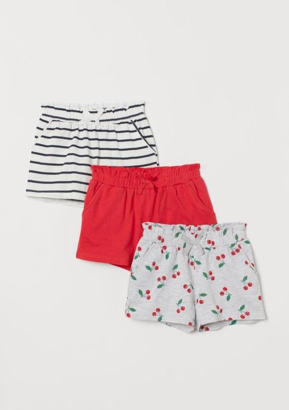 Трикотажні шорти для дитини шведського бренду H&M. Тканина-100% бавовна. Колір - сірий в принт черешень. Вартість вказана за 1 шорти. Розмір в наявності на зріст 92см. Відправка щоденно!!!! Є наложенний платіж з частковою передоплатою 100грн.
