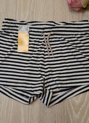 Шорті в чорно - білу смужку, в поясі на гумку та зав'язки ✔ Вік 6-8 років, зріст 122-128 см,п/пояс 28 см, д/зовнішній шов 22см 💬100% бавовна 🕶 Young Style