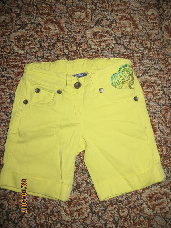 Подовжені шорти. Колір -лимонний. У поясі резинка, регулюється.