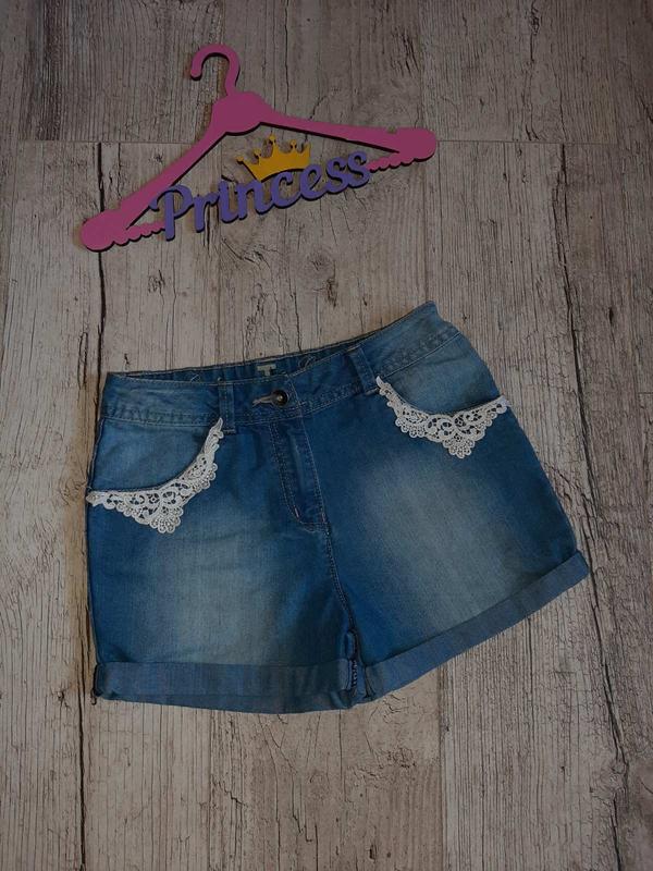 Стильные джинсовые шорты с вышивкой Tu p.146 Длина по боковому шву 28.5 ПОБ 38-40 в поясе регулируется резинкой утяжкой Посадка 23/30